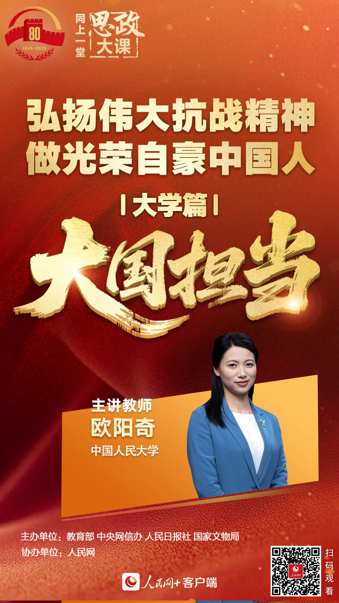 本次思政大课分为小学课程“众志成城”、初中课程“中流砥柱”、高中(中职)课程“精神丰碑”、大学课程“大国担当”四个篇章,按学段在9月15日至18日依次推出,敬请关注!