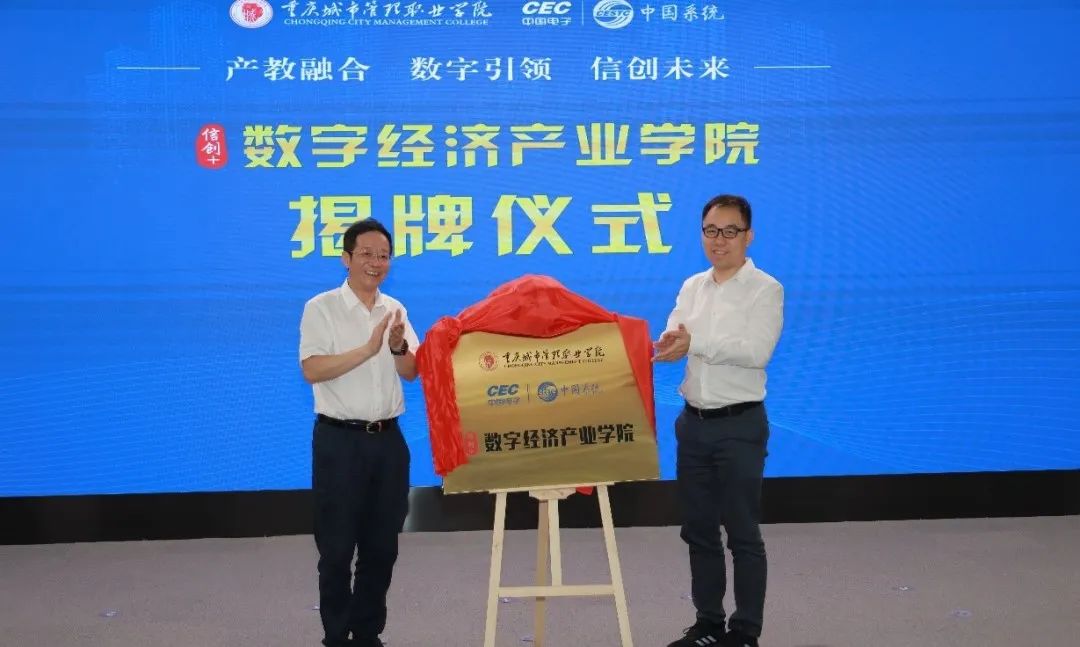 (神州学人网讯)7月8日,中国电子集团及所属企业与重庆城市管理职业学院在渝签署战略合作协议,同时举办了中国电子信创人才培养基地及中国系统数字经济产业学院揭牌仪式。