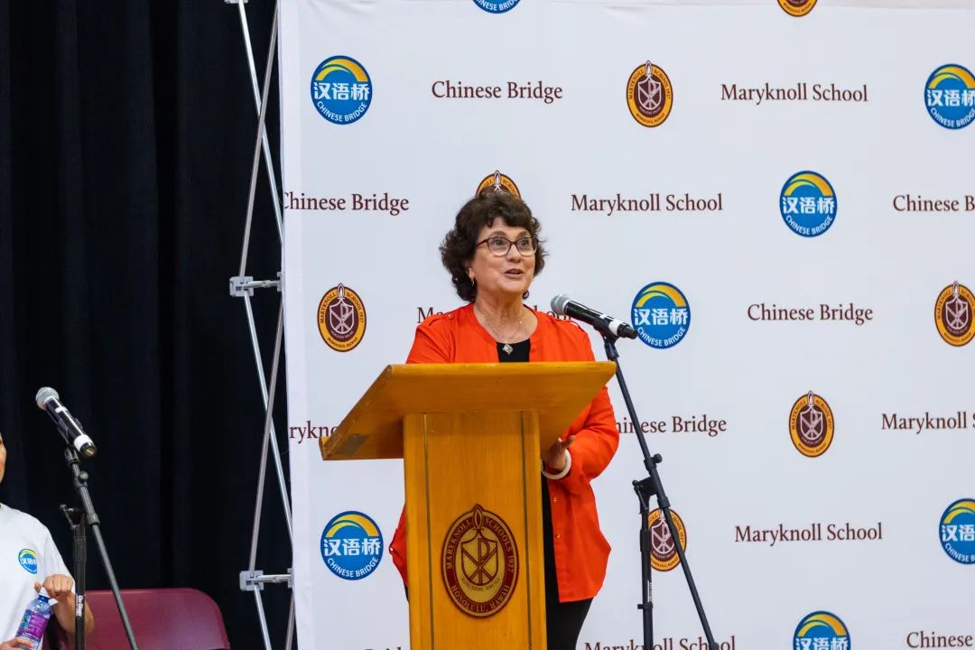 夏威夷州玛利诺学校校长莎娜·唐(Shana Tong)在致辞时表示,“汉语桥”中文比赛是一场展示中文水平能力的盛会,参加“汉语桥”中文比赛,孩子们可以增进对中国及中华文化的了解,对他们未来的成长有积极的作用。此外,她还介绍了夏威夷州玛利诺学校的中文沉浸式项目,高度评价了玛利诺学校的学生在中文学习中取得的成绩,对所有的中文教师表达了敬意。