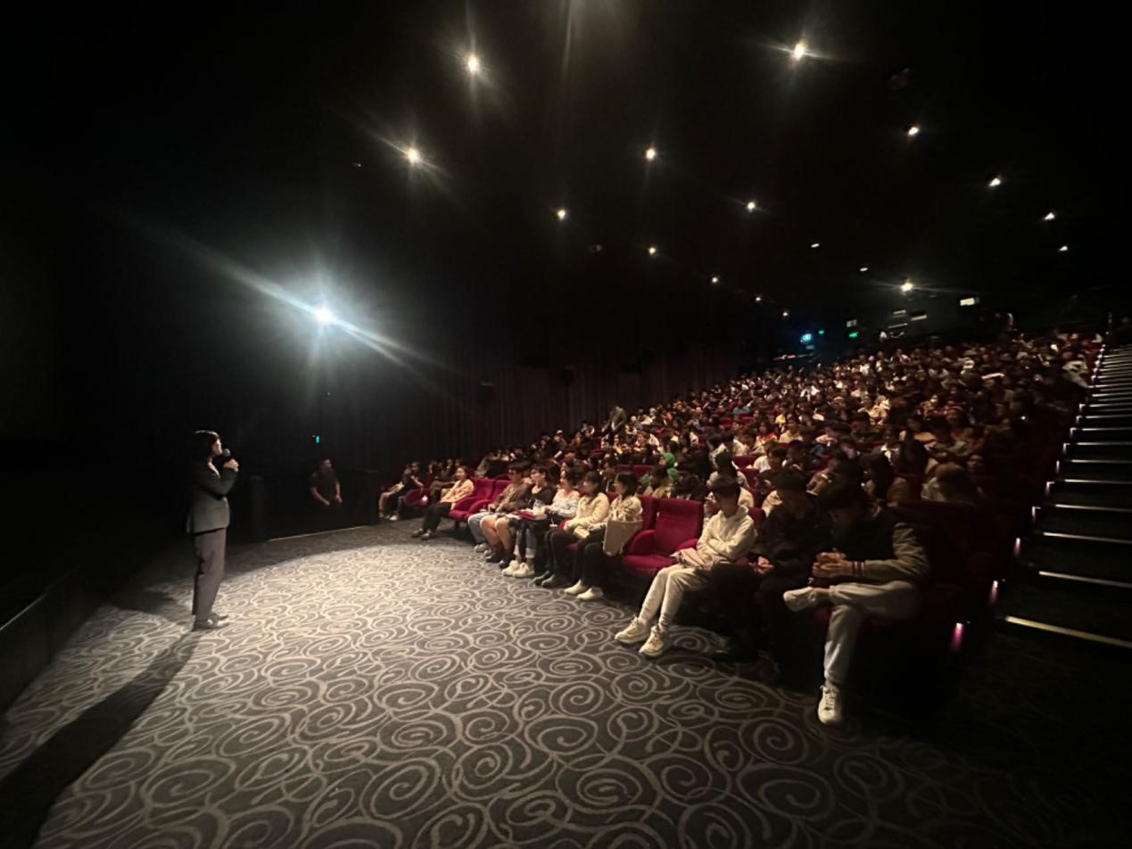 观影现场气氛热烈,同学们沉浸其中,对诈骗团伙的“黑心”感到愤怒,为受害人的“贪心”感到焦急,对受害人家庭的“伤心”感同身受。特别是影片结尾,真实的诈骗受害者亲身讲述惨痛的受骗经历,更是触动人心,让大家深刻铭记防骗反诈的重要性。