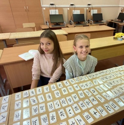 我们的相识是在斯莫列维奇第二中学学生组织的中文文化周活动中,这些10多岁的孩子们在活动中组织并介绍了中国传统节日中秋节,并自发制作了中文饼干,还一起寻找资料,讲述了后羿射日、嫦娥奔月的传说故事。他们的积极和聪慧令我感动。在后来的课程中,我们一起了解中国传统节日、传统服饰,一起折纸、剪纸、写毛笔字,认识京剧昆曲,我们还一起包粽子、包饺子,过中国年。上课之余,一些对中国和中文感兴趣的学生时常会来找我聊天,精进中文,六年级学生热妮娅Женя就是其中之一,她还带着妹妹雅娜Яна来学中文。