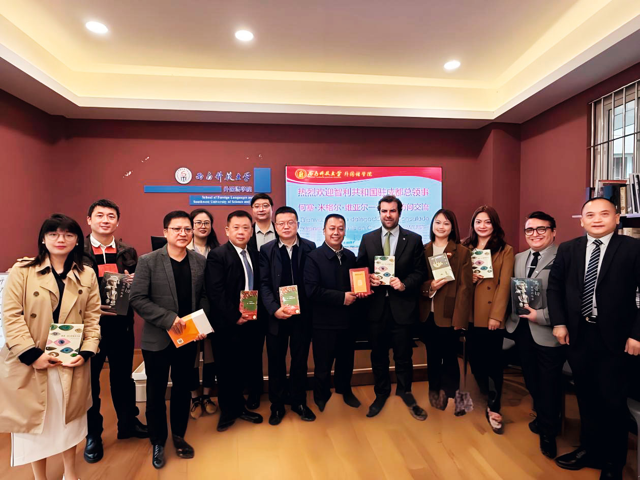 基于与国外政府及国内高校、机构及企业的良好合作关系,西南科技大学外语学子突破了传统“翻译”的职业边界,开拓出多维发展空间。经我引荐,不少优秀毕业生入职四川省外办、智利驻华使领馆等外事部门(机构),比亚迪汽车、长安汽车、中国能建葛洲坝集团等知名企业的驻外机构,以及四川大学、成都外国语学院、西南科技大学等高校。外语学子越来越多样的职业发展空间,既体现了外语学科的广泛适应性,也彰显了新时代外语人才的创新精神与国际视野。在这一过程中,我也深刻理解了政校企三方协同育人的重要作用,同时看到自己在其中发挥的桥梁作用。