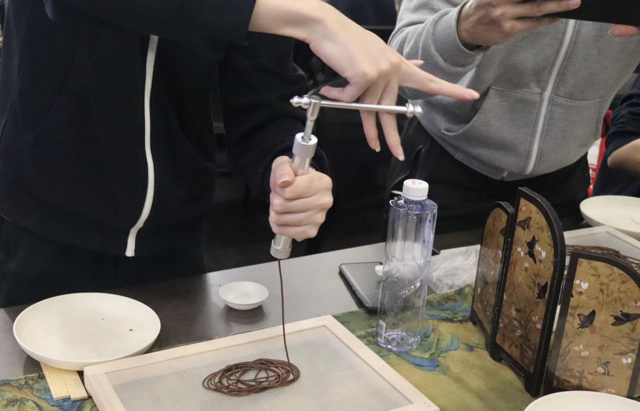 手作环节尽显非遗雅致:取香粉与纯净水,遵循“少量多次加水”古训,以虎口揉搓、撕扯、重组,直至揉出光滑柔韧的香泥。密封醒泥 20分钟后,将香泥放入挤香器,抬手绕圈挤压,细长香条顺势而出,再经轻揉塑形、木板压直,一根根承载匠心的线香便初具雏形。留学生们沉浸在“慢工出细活”的节奏里,于指尖翻飞间体悟东方匠心。