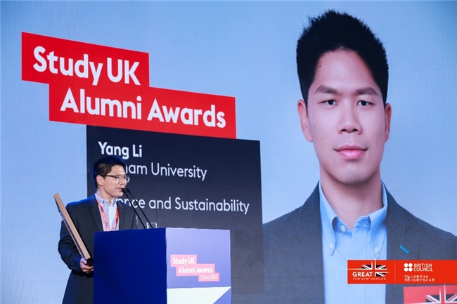 “科学与可持续发展奖”的得奖者是毕业于英国杜伦大学的李扬博士,他目前担任北京大学地球与空间科学学院长聘副教授,是活跃于关键矿产研究与月球科学领域的青年科学家代表。李扬博士提出并发展了“脉动式成矿”新模型,为稀土成矿理论和找矿勘查提供了重要支撑。李扬博士于领奖时表示:“在英国的留学经历使我受益匪浅,如今我在教学、研究及各类工作中取得的成就,都离不开当年的积累与历练。”