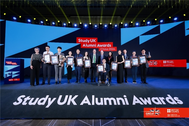 神州学人网讯(记者杨匀 伍依然) 近日,2026“英国杰出校友大奖”(Study UK Alumni Awards 2026)颁奖典礼在北京举行,公布中国区获奖者名单。今年,共收到来自全球120多个国家、140余所英国高等院校机构、逾1800份留英校友的申请,经过多轮讨论和评选,凭借在商业、人工智能、体育、设计、文化等领域取得的卓越成就,中国区12位优秀留英校友入围并出席颁奖典礼现场。