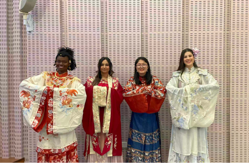 随后,留学生们展示了各自选择的汉服,了解了这些服装的年代与含义,中外学子互相交流,其乐融融。