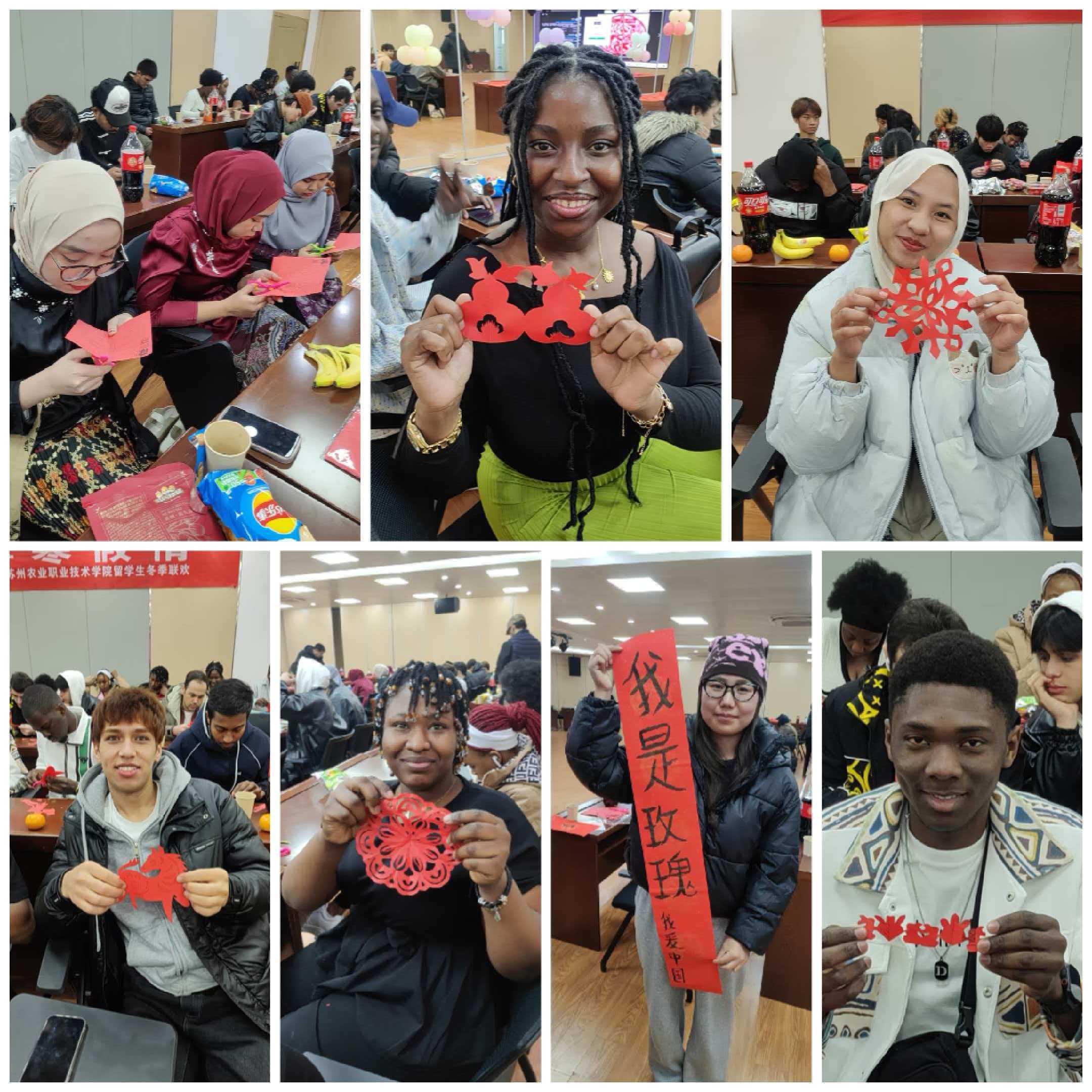 神州学人网讯 1月28日下午,苏州农业职业技术学院团委活动室内张灯结彩、欢声阵阵,学校来华留学生齐聚一堂,共迎中国农历新年,感受中华优秀传统文化魅力。
