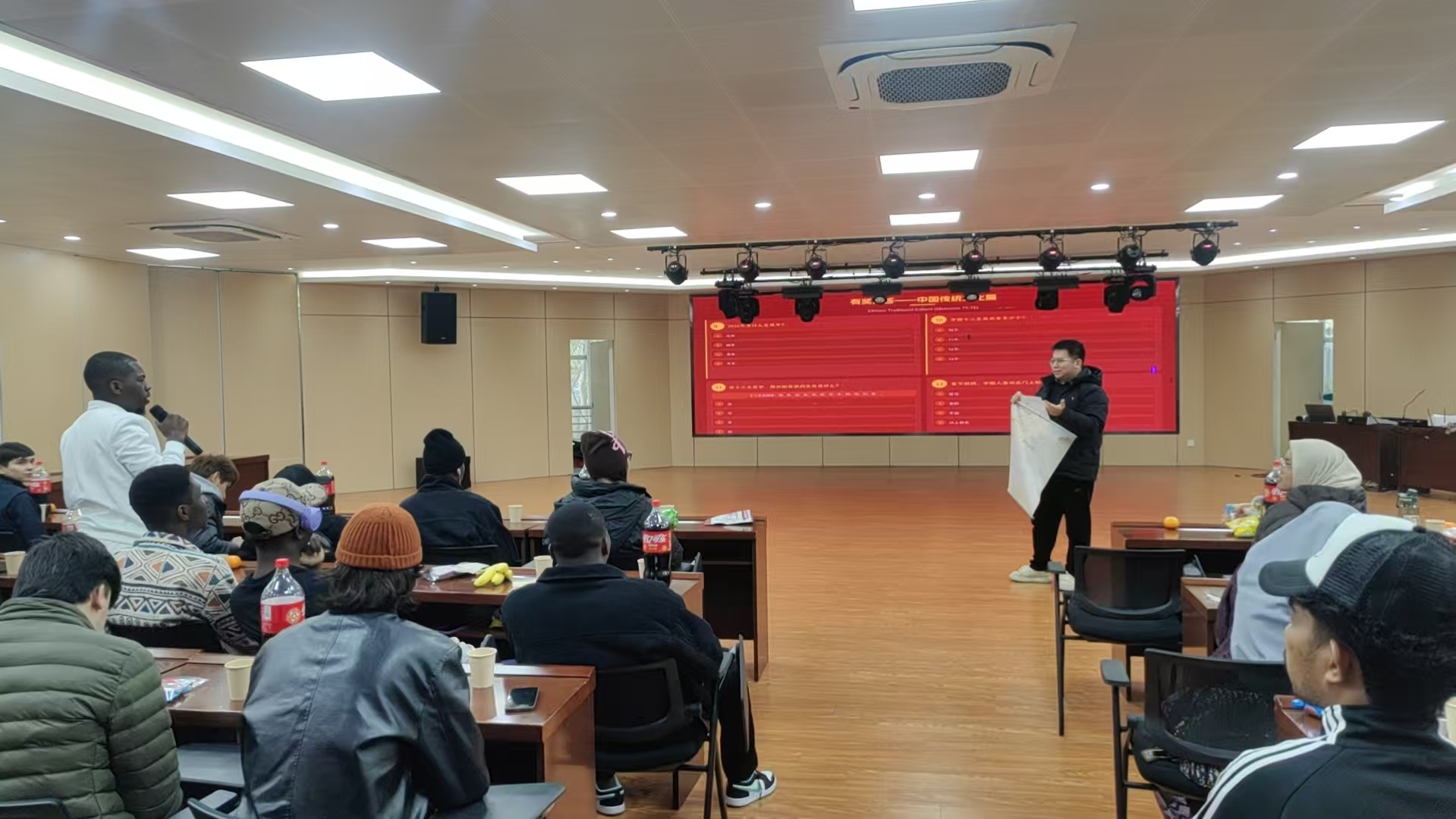 活动还设置了趣味有奖竞答环节,内容涵盖春节习俗、传统文化及校情校史,留学生们踊跃参与,在互动中进一步加深了对中国文化和学校的了解。