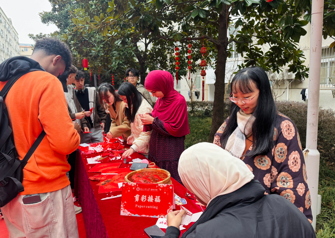 神州学人网讯 2月4日,时值立春,湖北工业大学国际学院举办“共话新年·同贺新春”马年春节文化体验活动。国际学生公寓园区内张灯结彩,焕然一新。湖北工业大学党委常委、副校长贺行洋与国际学子们共迎新春,师生携手贴春联、挂福字、燃暖炉,在融融暖意中共迎新春佳节。