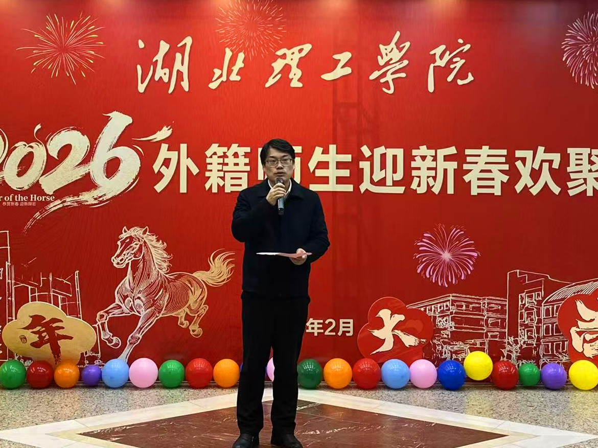 胡国珍向全体外籍师生致以诚挚的新春祝福,并回顾了过去一年学校在人才培养、学科建设、科学研究等方面取得的成绩。他指出,学校始终坚持“开放包容、合作共赢”的理念,致力于为中外师生搭建多元融合、互学互鉴的文化交流平台。希望全体留学生做文化交流的年轻使者,主动拥抱不同文化,将在湖理学习生活的见闻与收获分享给世界,成为连接中外友谊的坚实纽带。