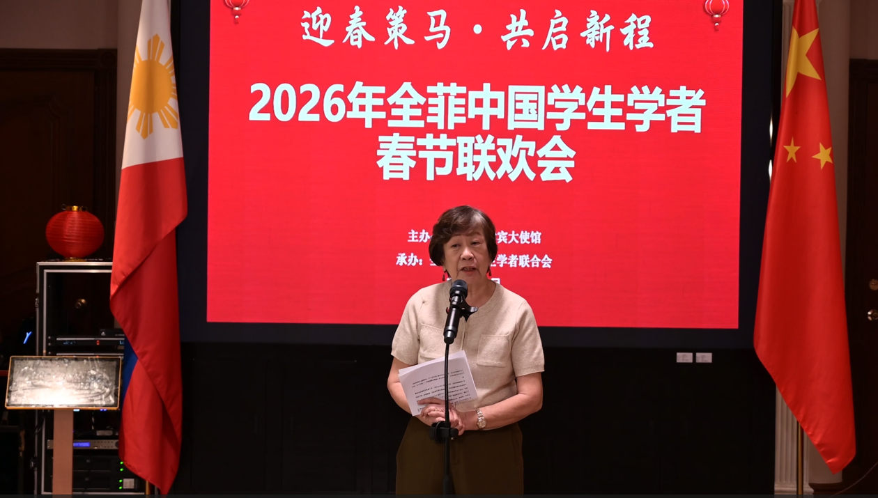 全菲中国学联主席魏玉彪回顾了学联近3年来开展的重要活动,展望了2026年在深化服务、拓展平台、加强队伍建设方面的规划,呼吁广大留菲学子在兼顾好学业的同时积极投身中菲友好事业。