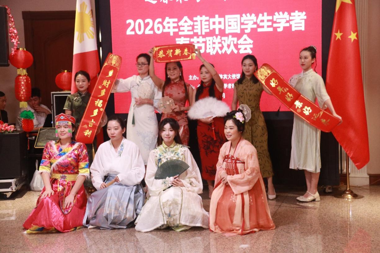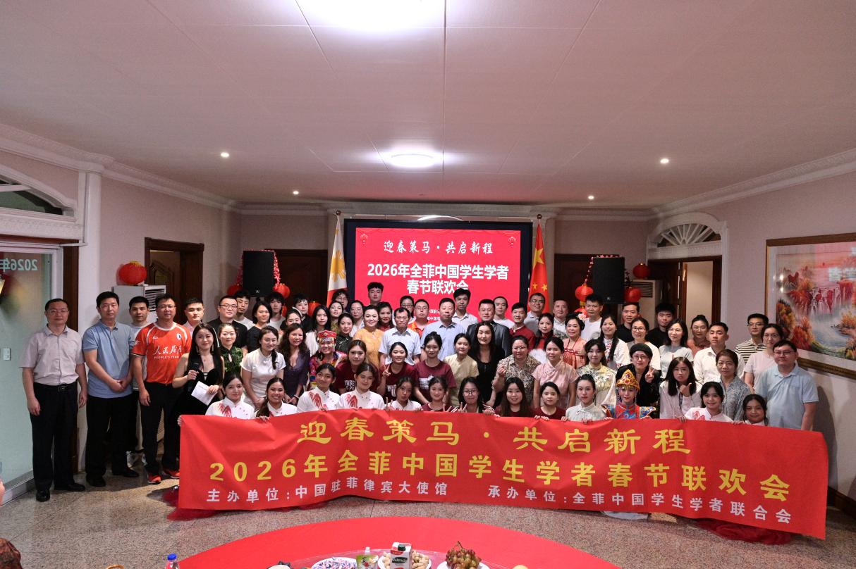 神州学人网讯 2月8日,由中国驻菲律宾使馆主办、全菲中国学联承办的“迎春策马·共启新程—2026年全菲中国学生学者春节联欢会”在马尼拉举行。中国驻菲律宾特命全权大使井泉,参赞熊胜,秘书贾雁鹏,在菲中国学生学者,孔子学院师生,北京大学、厦门大学菲律宾校友会代表,以及中资企业、国际组织嘉宾朋友130余人欢聚一堂,共迎丙午马年新春。
