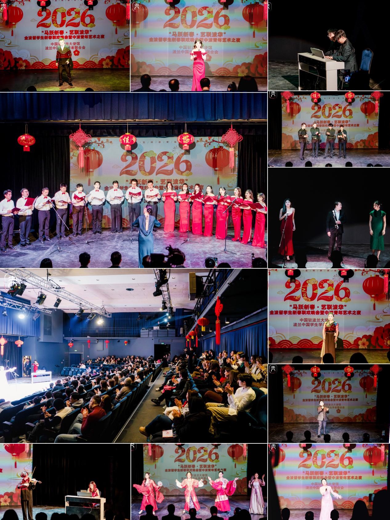 神州学人网讯 2月9日,中国驻波兰使馆和全波中国学生学者联谊会共同举办“马跃新春·艺联波华”2026年全波留学生新春联欢晚会暨中波青年艺术之夜活动,驻波兰大使卢山同300余名中波青年共庆新春。