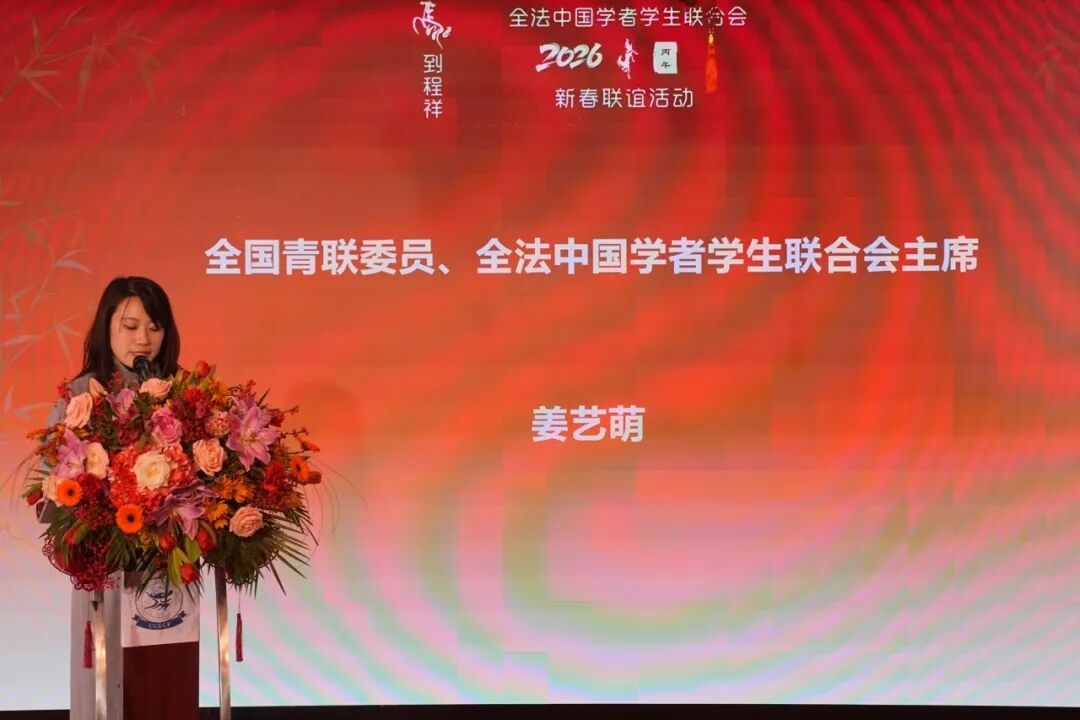 全法中国学联主席姜艺萌在致欢迎辞时表示,2025年,全法中国学联紧紧围绕“服务学子、凝聚力量”工作主线,持续开展系列活动,逐步构建起覆盖学习、生活与发展的多元化服务平台。2026年是全法中国学联成立四十周年。新的一年愿传承优良传统,汲取宝贵经验,与广大留法学子携手同行,在海外学习生活与个人发展道路上相互支持、共同成长。