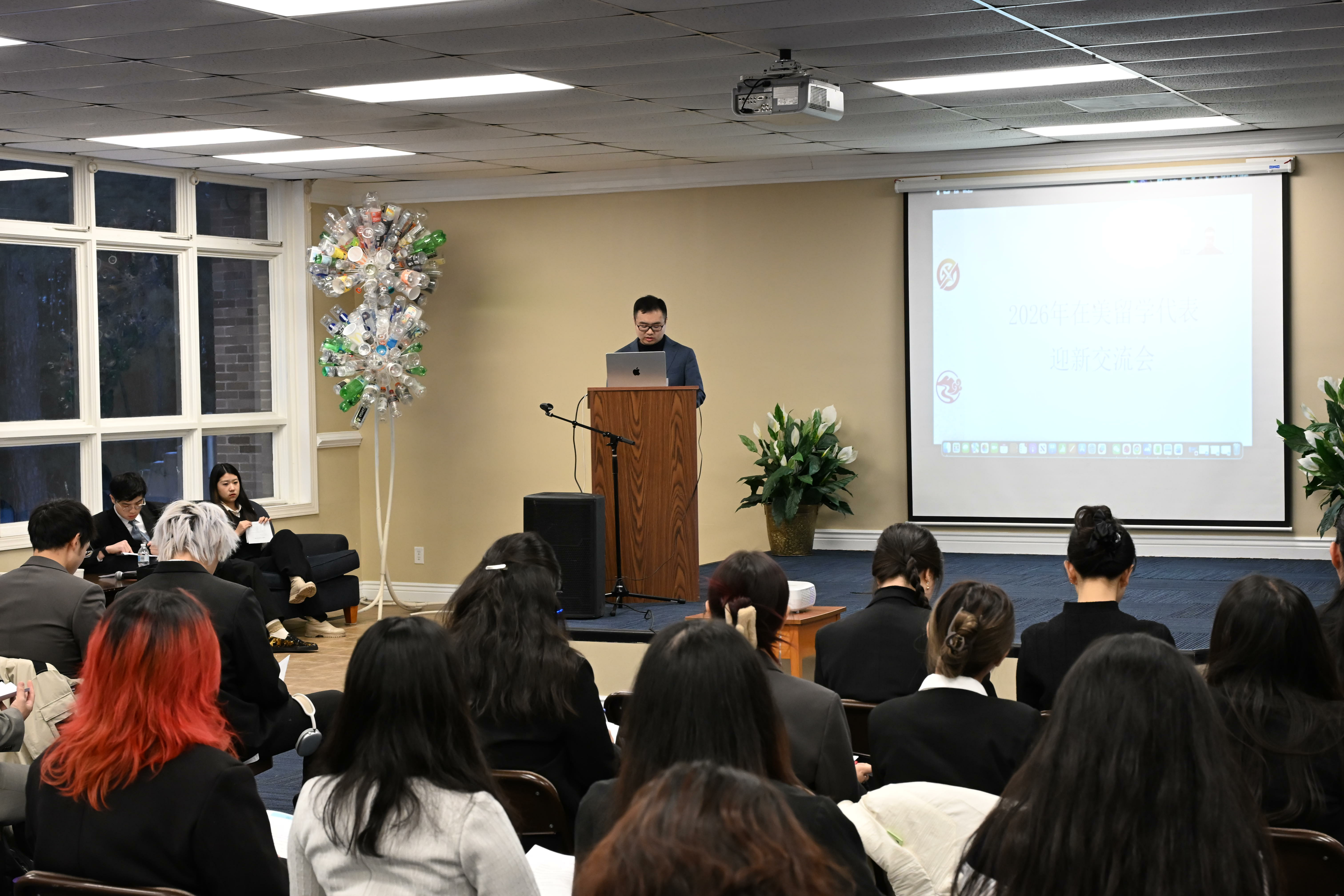 来自全美各地会员学联主席围绕学联组织建设、品牌活动打造及服务留学人员等重点工作进行了阶段性梳理与总结。中国驻美国使馆公使衔参赞沈雪松对总会、美东中学联长期服务留学生群体、支持学生发展所作工作表示肯定,并鼓励同学们专注学业、提升专业能力,主动拓展国际视野与跨文化沟通能力,在海外学习生活中实现全面成长。中国驻美使馆教育处参赞夏娟提醒同学们增强安全防范意识,做好学习与生活规划,在多元文化环境中健康成长、积极参与中美人文交流。
