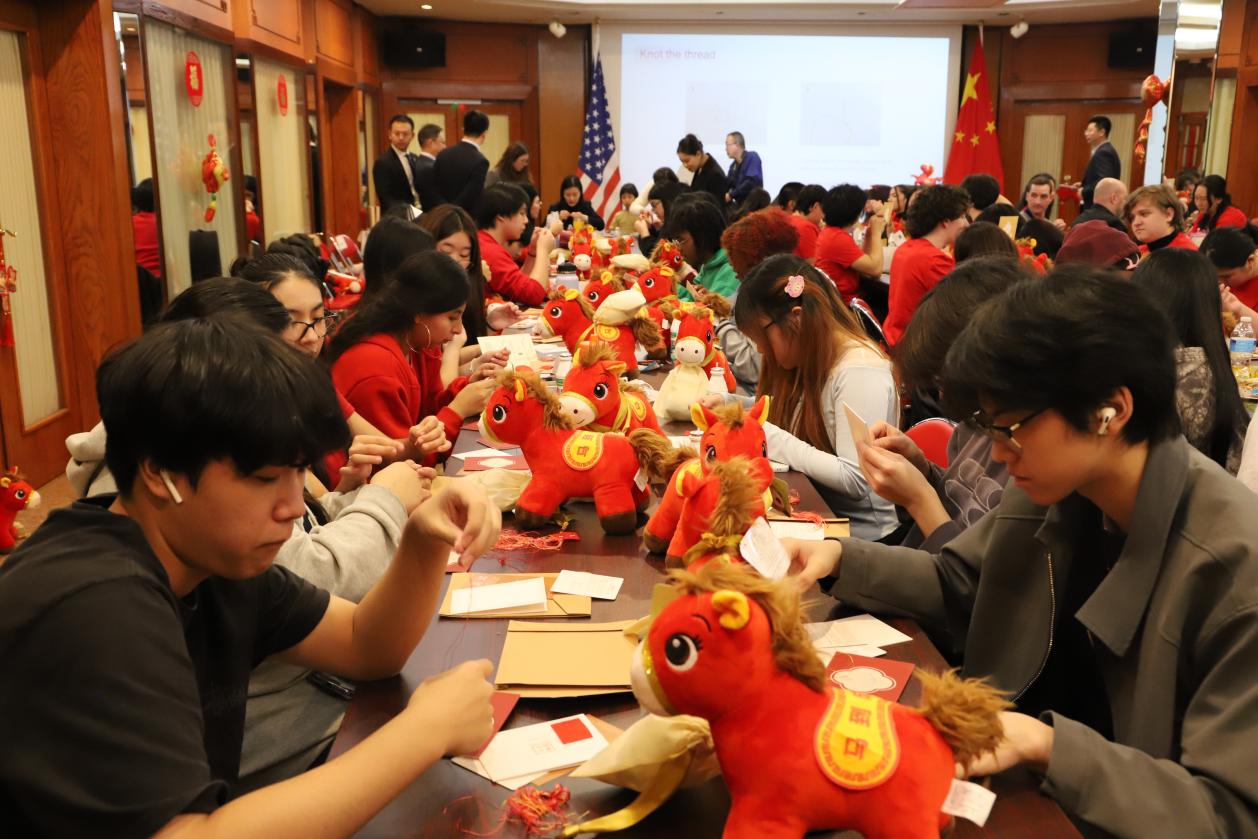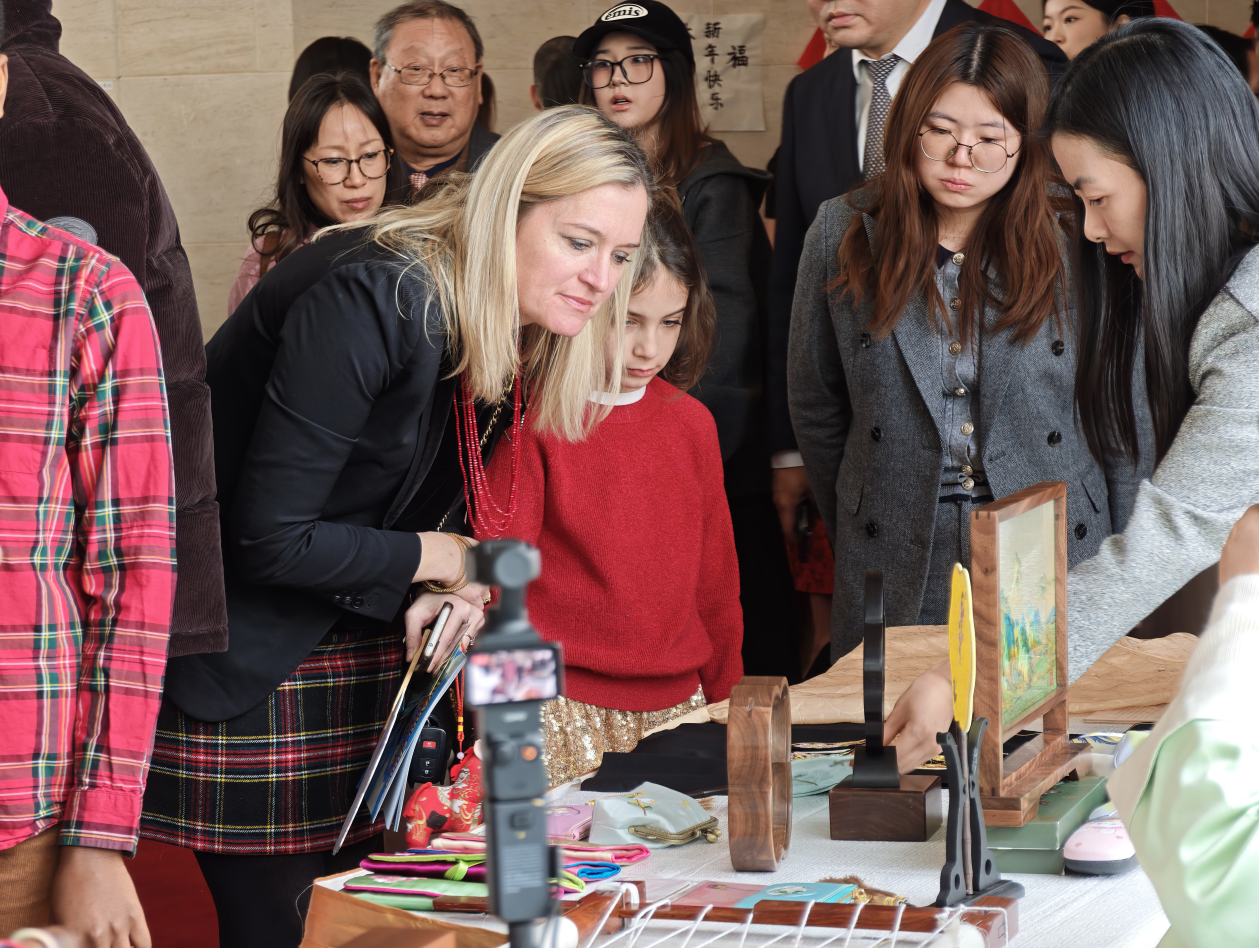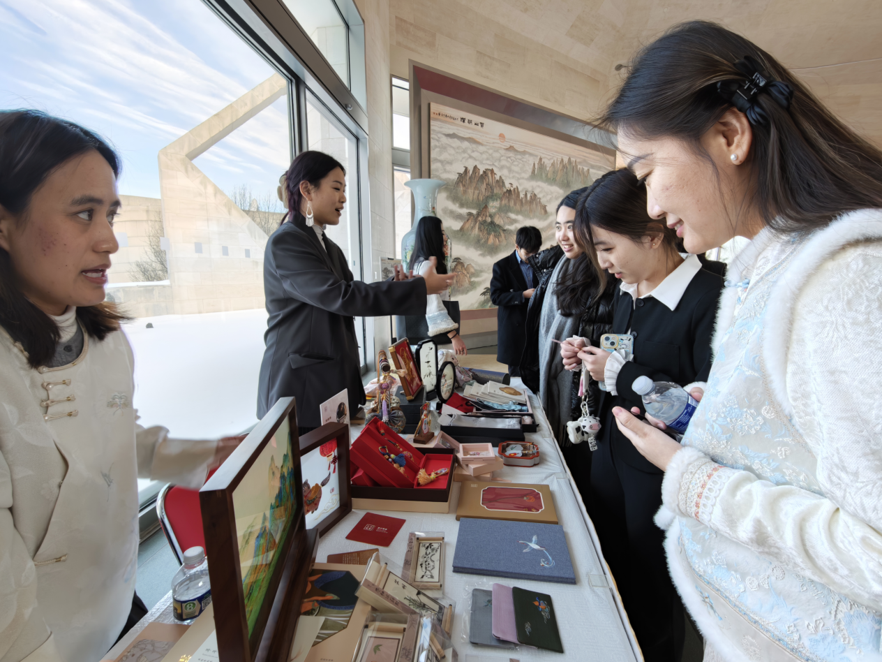 1月31日下午,中国驻美国使馆举办中美青年新春联欢主题活动,总会、美东中学联组织留学生代表参与,并邀请苏州文化代表团在新春庙会环节中开展苏绣文化展示。