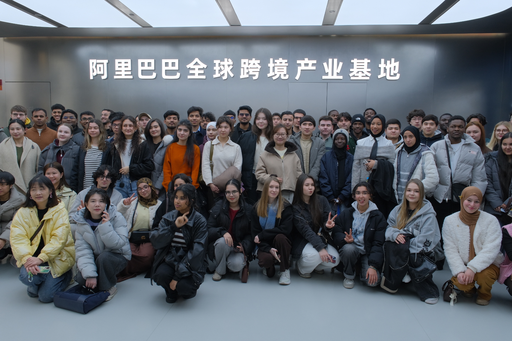 杭电来自10余个国家的37名留学生走进阿里巴巴全球跨境产业基地,亲身感受杭州作为“数字经济第一城”在电商、数字贸易等领域的蓬勃生机。