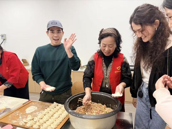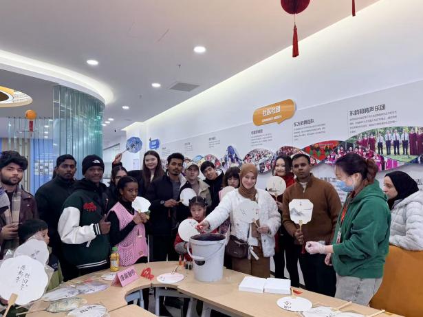 科技参访后,一场充满年味的文化交流活动在东信国际社区温暖开启。留学生们亲身体验了写“福”字、制作非遗漆扇、剪窗花等传统年俗,并与社区志愿者一同包饺子、品年味。在轻松愉快的氛围中,中外青年拉近了距离,加深了对中国传统节庆文化的理解。