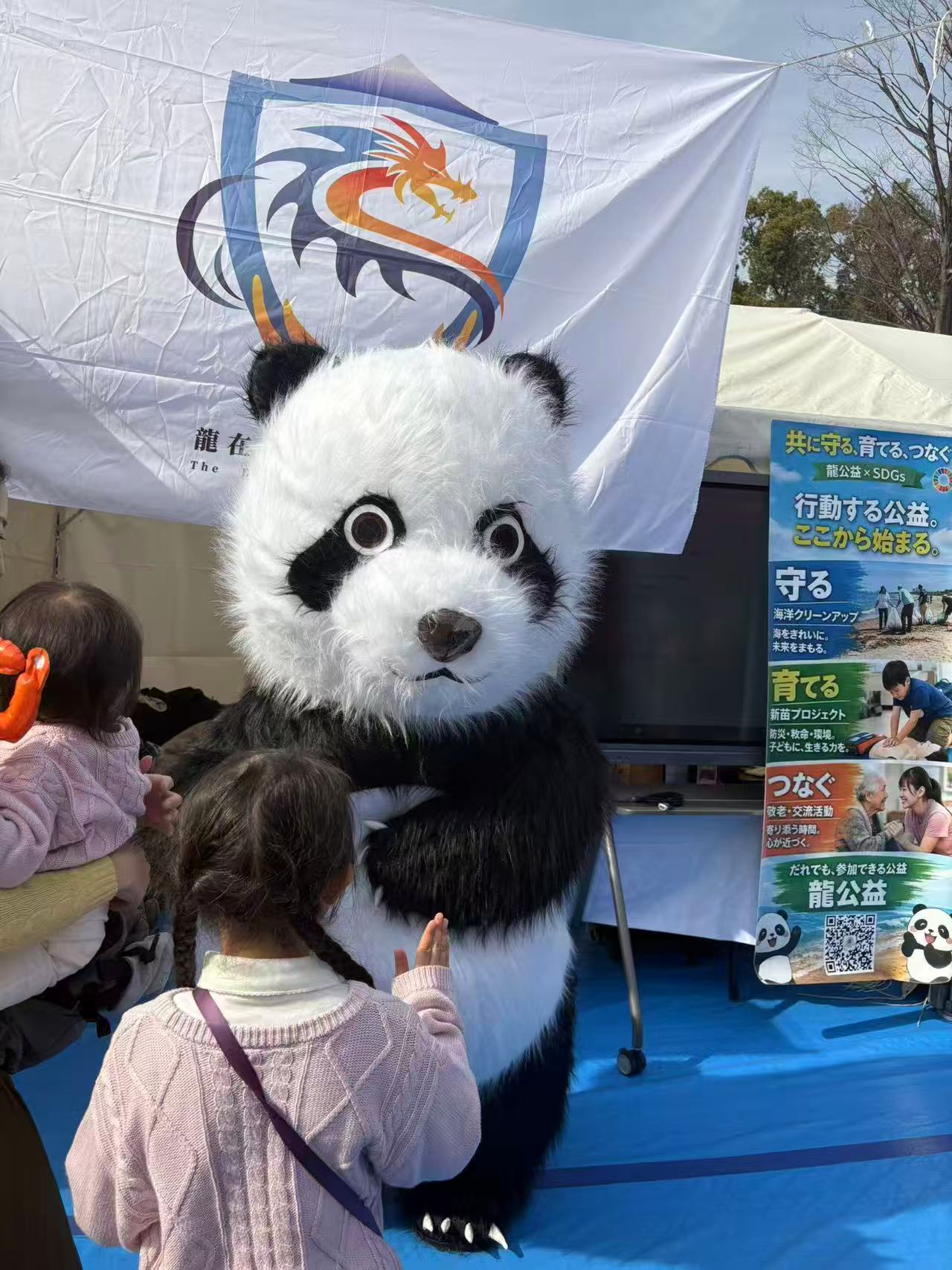 广场上挂满了红灯笼,风不大,灯笼轻轻晃着。烤肉的烟往上飘,混着甜甜的糖葫芦味。新疆羊肉串、北京烤鸭、台湾鸡排的摊位排成一列,旁边还有卖中国白酒的摊位,不少日本游客站在那里研究标签。接待处前排起长队,大家等着摇限定的扭蛋。摄影展里挂着过去15年拍摄的大熊猫照片。几个年轻的中日艺术家围着一只白色熊猫模型涂鸦,小朋友们追着熊猫人偶跑。虽然没有真正的熊猫,但熊猫却到处都是。我站在人群里,听见有人用东北话聊天,也有人用日语向朋友解释,春节是中国最重要的节日。那种感觉真的很奇妙,在热闹的活动现场,好像大家并不是为了看什么,而是为了在一起。