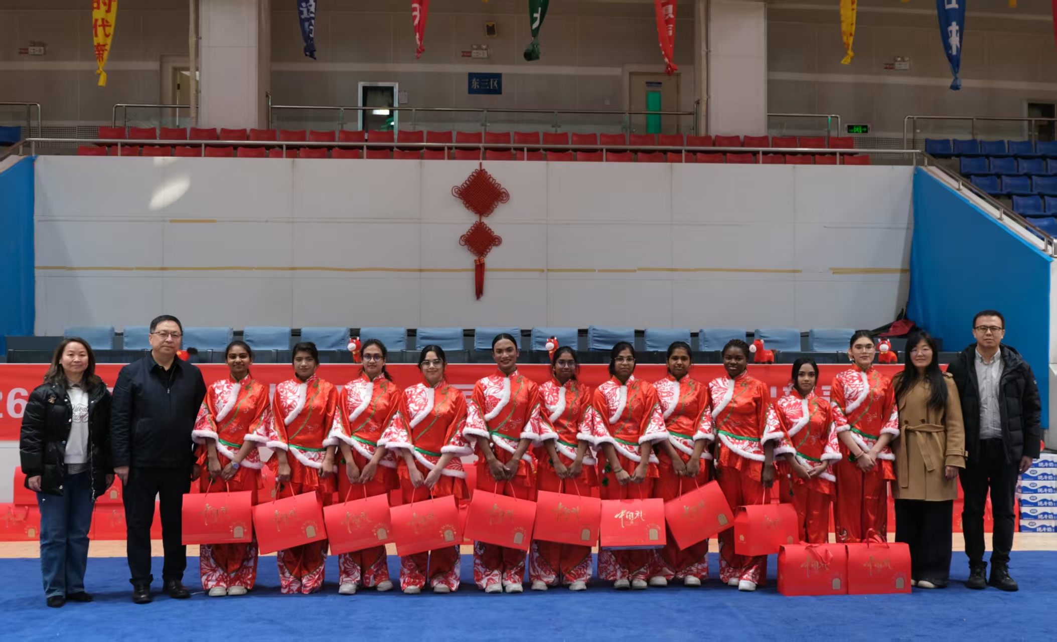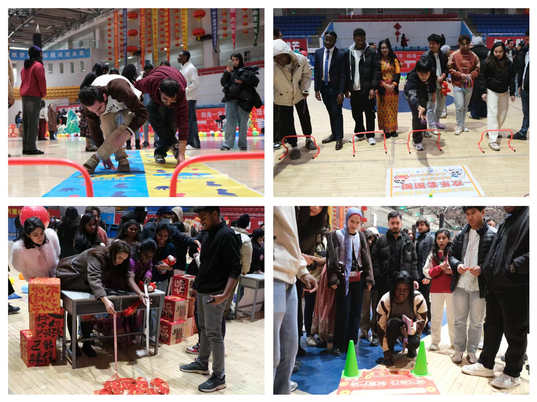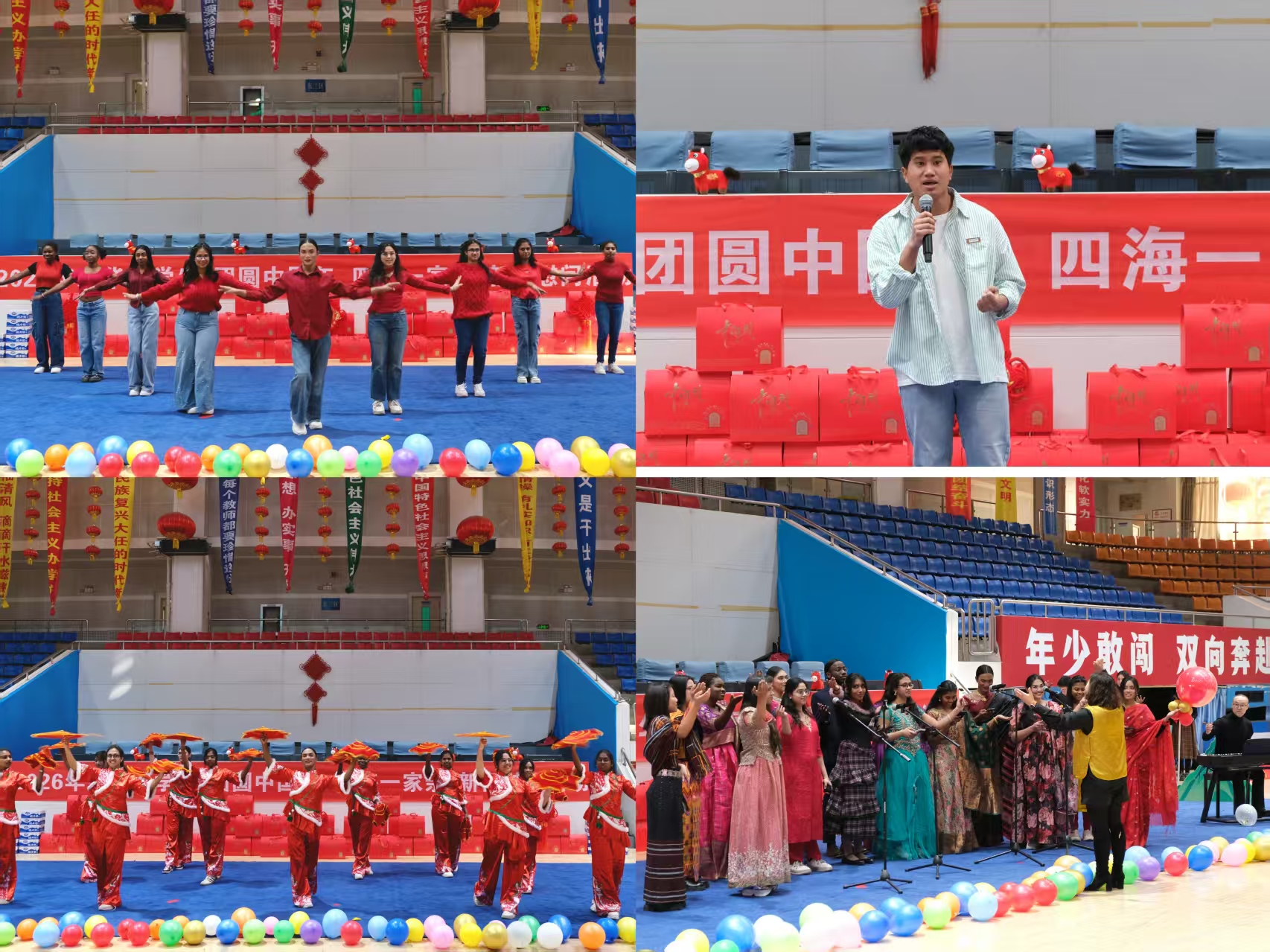 腊月廿三北方小年当天,“团圆中国年·四海一家亲”新春慰问活动在宁夏医科大学雁湖校区弘毅体育馆举行。200余名留校留学生与校领导、教师齐聚一堂,场馆内红灯笼高悬、春联点缀,年味十足。秧歌《小辣椒》欢快上演,留学生手持手绢翩翩起舞;《茉莉花》的旋律被学子们用中文真挚演绎,文化共鸣悄然滋生。校领导为留学生送上新春礼包,并深情寄语:“过去一年里全体留学生刻苦学习、积极参与文化体验和实践活动,希望大家在今后的学习生活中继续锲而不舍、学有所成,发挥好中外交流的桥梁纽带作用,讲好中国故事、宁医故事。”随后的投壶、套圈等趣味游戏,让留学生在欢笑中感受中国节庆趣味。