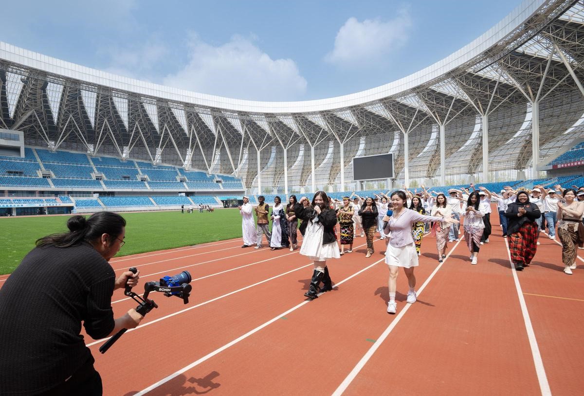 “这是我第一次用中文参与原创歌曲录制,虽然还有些紧张,但每一句歌词都让我更加热爱这座城市。”来自卢旺达的留学生奈沫在录制现场激动地说。留学生同乐合唱团的成员们利用课余时间反复练习中文发音、细细揣摩歌词情感,当天身着各自国家的民族服饰,在奥体中心体育场内深情献唱。从发音生涩到表达流利,从内心忐忑到从容自信,留学生们将青春热忱融入动人旋律,与黄石本土音乐人默契配合、同声歌唱,抒发对黄石这座“第二故乡”的深厚情谊。