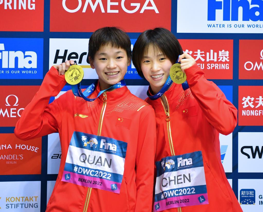 新华社柏林10月21日电 2022国际泳联跳水世界杯21日在柏林进行了三个项目决赛,中国选手包揽金牌。全红婵/陈芋汐在女子双人10米台决赛中夺得各自职业生涯首个世界杯冠军,两人同时完成了奥运会、世锦赛和世界杯三大赛的金牌“大满贯”。