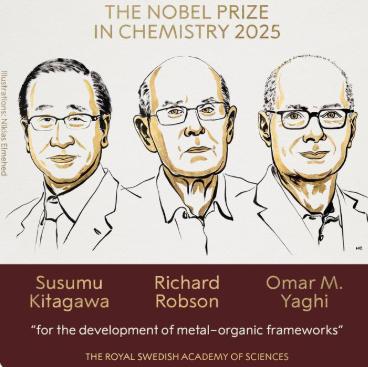 当地时间10月8日,瑞典皇家科学院决定将2025年诺贝尔化学奖授予北川进(Susumu Kitagawa)、理查德·罗布森(Richard Robson)以及奥马尔·M·亚吉(Omar M. Yaghi)三位科学家,以表彰其在金属有机骨架开发领域的贡献。获奖者将平分1100万瑞典克朗(约合836万元人民币)奖金。