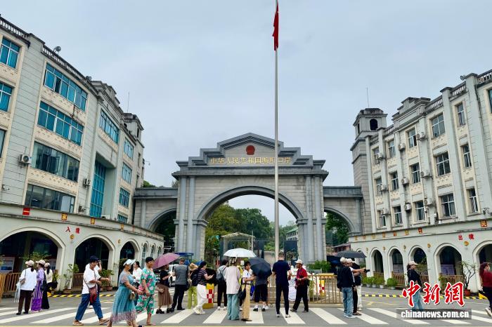 10月3日,各地游客来到位于云南省德宏州瑞丽市的畹町口岸旅游打卡。 罗婕 摄