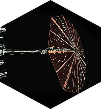 国家航天局发布的天问二号探测器传回的圆形太阳翼展开的图片。国家航天局供图