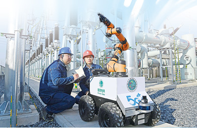 技术人员正在对一台搭载DeepSeek大模型技术的智能巡检机器人进行巡检数据校核。宋卫星摄(人民视觉)