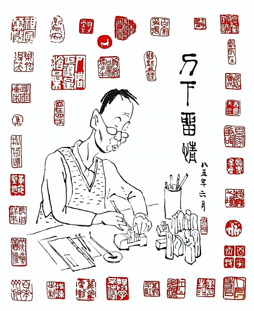 《刀下留情——为篆刻家造像》黄远林画 1985年