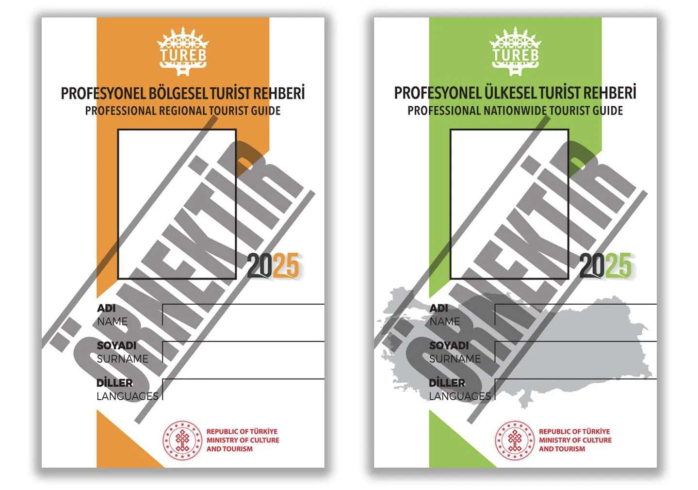 (一)导游。根据土相关法律法规,在土从事导游工作须有土耳其导游协会(TUREB)颁发的工作证,有效期为1年,每年须续期。2025年土导游工作证样式如下图: