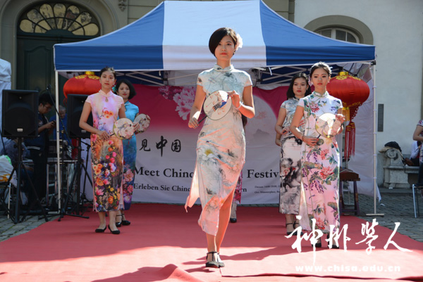 (本网讯)在瑞士老城的Münster大教堂广场前,充满了浓郁中国风情的旗袍、武术、茶道、书法等展示项目,吸引了众多瑞士人的目光。9月24日下午,由中国学人科技协会、瑞士各地中国学联以及China-Switzerland Connection等机构联合举办的主题为“遇见中国、浓情中秋”的文化活动正在这里举行。此次活动不仅吸引了大量在瑞华人,也引起了瑞士当地人的浓厚兴趣。中国驻瑞士大使馆新闻参赞徐英先生及夫人等也闻讯赶来。据活动的负责人丰建华先生介绍,这是在伯尔尼举办的第二届“遇见中国”文化活动,它既可以让远在他乡的中国人感受到节日气氛,又可以通过文艺表演、展台展示以及图片展示向瑞士人介绍中国的传统节日和文化。