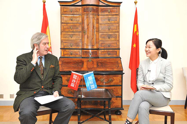 西班牙驻华大使瓦伦西亚(左)接受新华网专访。新华网 徐昕摄