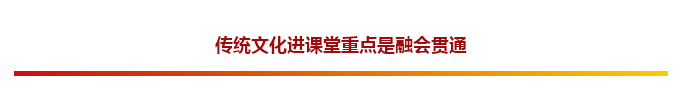 将优秀传统文化带进课堂,重点是融会贯通。要将优秀传统文化内容融入基础教育教学相关科目中,形成一套完整的教育体系,让学生们在学习知识的同时,了解优秀传统文化的魅力,培养其爱国主义情怀。