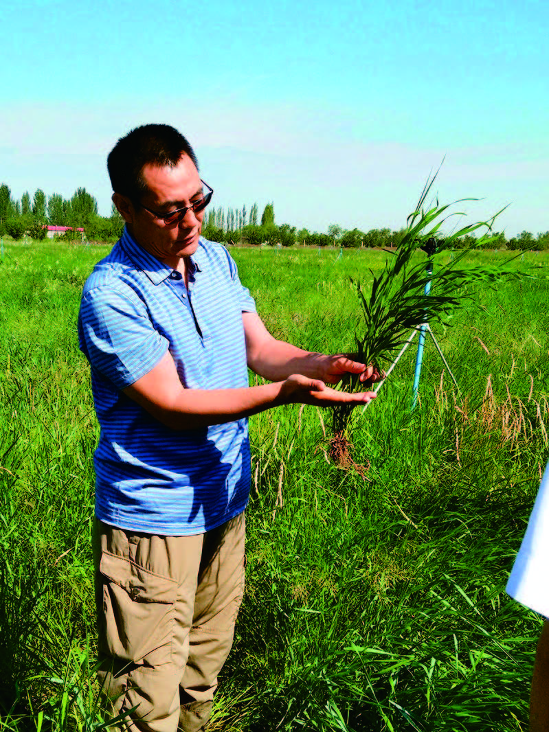 这里一片又一片的沙石地、盐碱地,一些地方长着稀稀疏疏的杂草,甚至盖不住地皮。这样的地恰恰就是中科羊草可以充分发挥作用的地方。中科羊草将野生羊草抽穗率、结实率、发芽率大幅度提高。目前在新疆、甘肃、宁夏、内蒙古、陕西、河北、河南、黑龙江等地推广效果表明,它在盐碱地改良、荒漠化土地治理、退化草地修复、毒害草治理等方面成效显著。