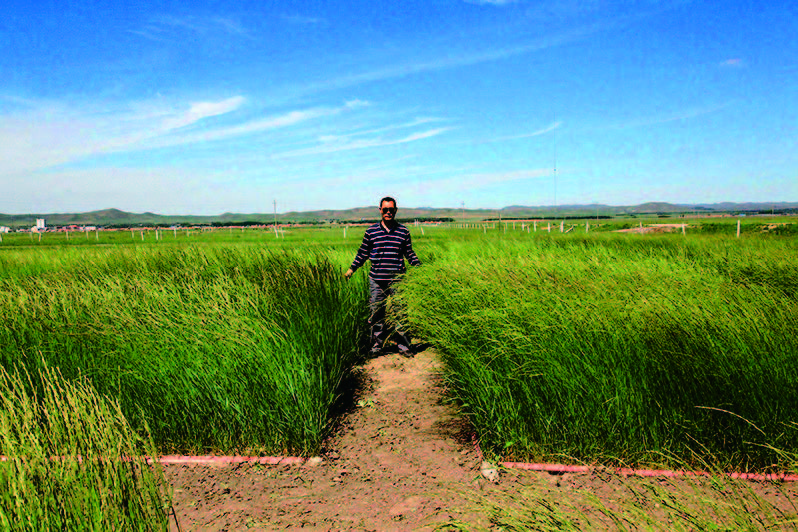 长势茂盛的羊草,图为刘公社在河北坝上塞北牧场羊草实验基地