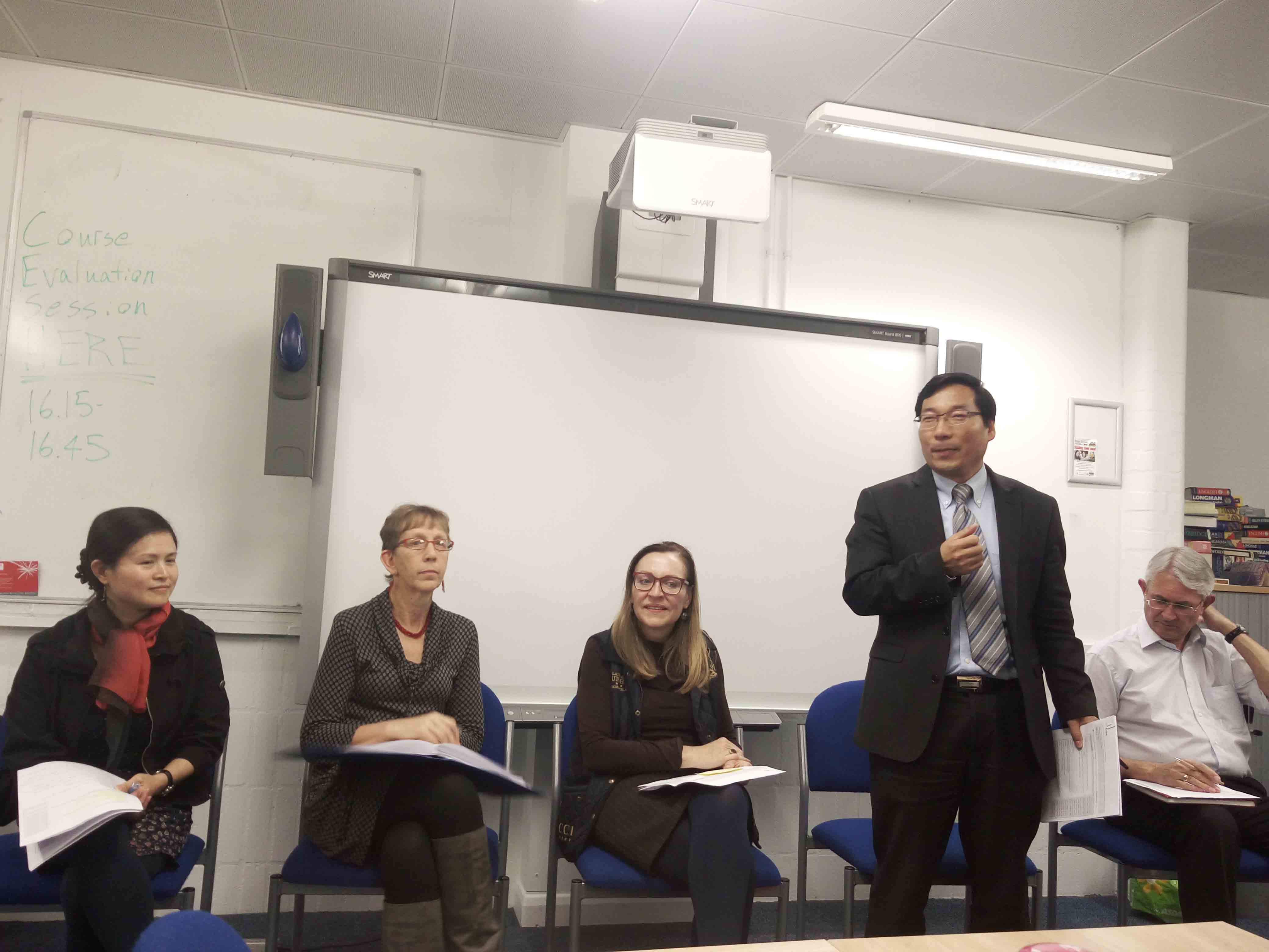 他们在课堂上通常以一种平等的身份出现,营造出一种平等、民主、自由的教学氛围,从不让我们站着回答问题,有问题或有要求可以直接提出,他们也很谦虚,很乐意接受我们的建议。我们之间的关系十分融洽。他们擅长赞扬,每时每刻都在表扬我们,他们的非言语交际行为也比较丰富,善于表演,对我们的课堂教学非常有利。正因为他们这样真诚的态度,让我们感到在雷丁大学学习是一种享受。