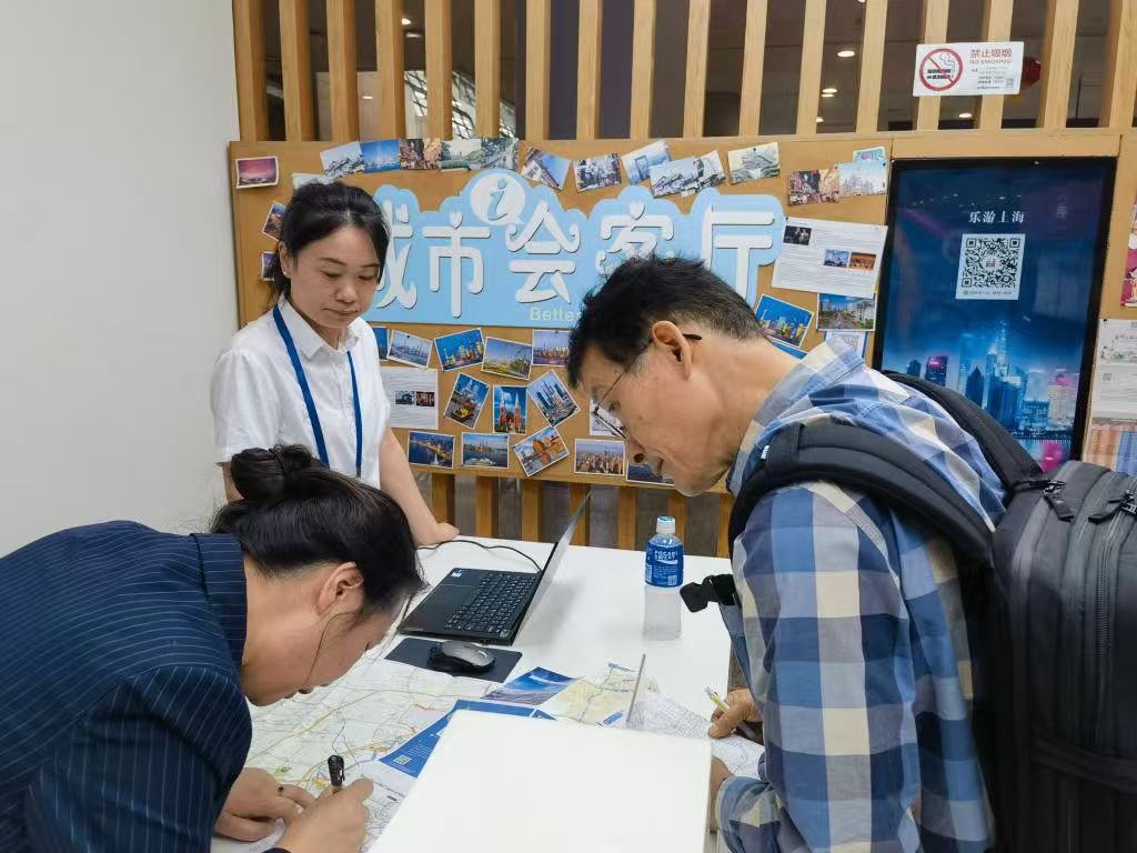 资料图:一名韩国游客在位于上海浦东机场的旅游咨询服务中心,向工作人员询问上海文旅信息。新华社记者 陈爱平 摄