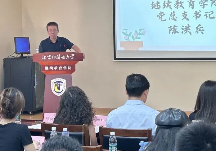 北京外国语大学继续教育学院党总支书记陈洪兵在致欢迎辞时,鼓励同学们负笈海外不仅要在学业科研上积极探索、勇攀高峰,还要高度重视留学安全,在努力感受融入当地社会文化的同时,做友好使者,展现中国青年风采。