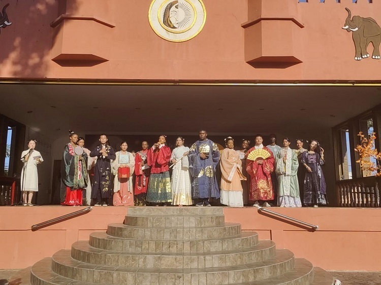 圭亚那大学孔子学院学员表演中华传统服装秀。(圭亚那大学孔子学院供图)