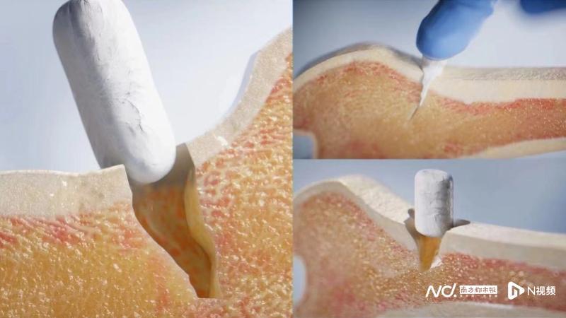 在外出参会时,孙杨去机场送一位骨科领域的专家回上海。在候机等待时,两人闲聊,这位专家提到,想要用一种可以塑形又抗水的材料做骨科填充物。“我才意识到,我们不就有现成的吗?”