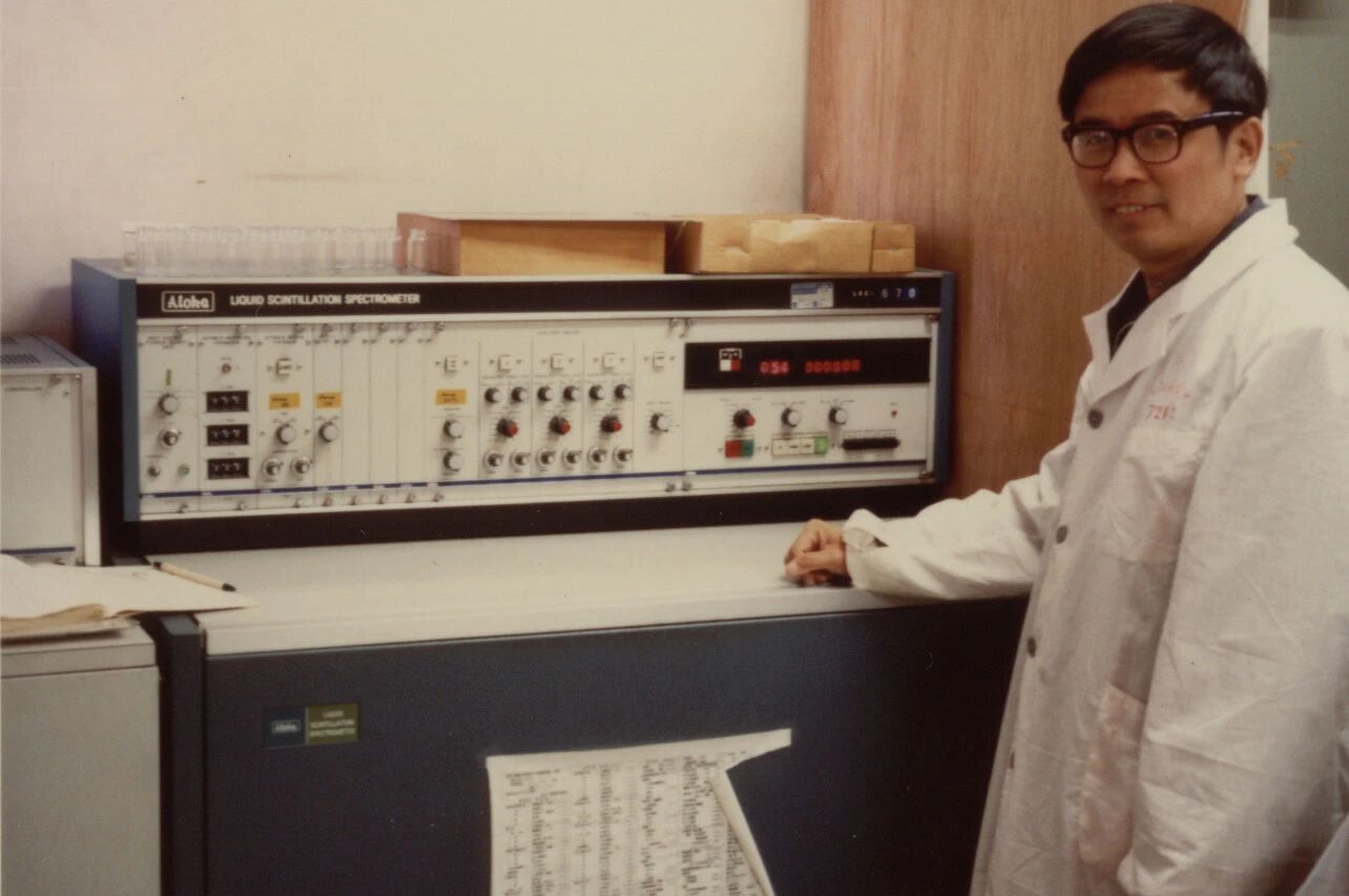 姚新生在操作液体闪烁测定仪。来源/中国科学家博物馆