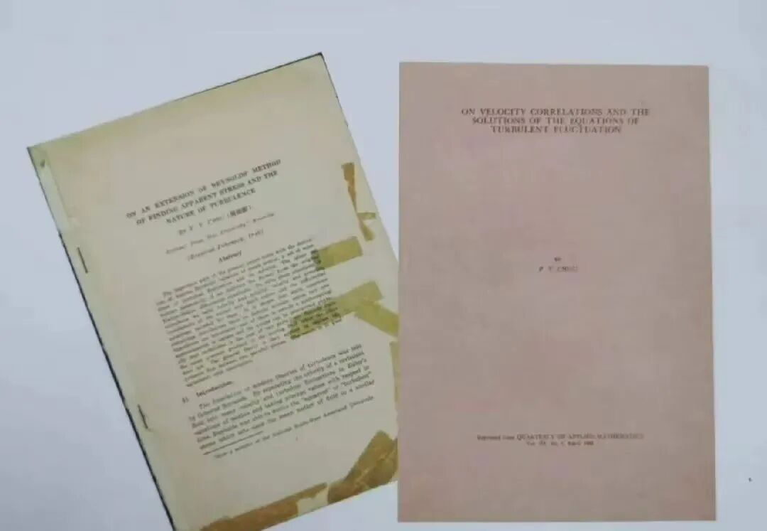 周培源关于湍流理论的学术论文。来源/《周培源》(画册)