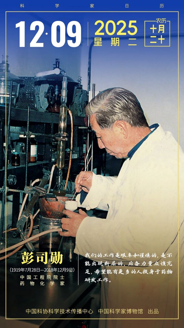 2018年12月9日,彭司勋院士在南京逝世,享年百岁。他将一个世纪的生命,毫无保留地奉献给了中国的药学事业。从战火中的青年学子,到归国的赤子;从辛勤耕耘的园丁,到勇攀高峰的科学家,他的一生,是对“精业济群、兴药报国”这八个字最生动的诠释。