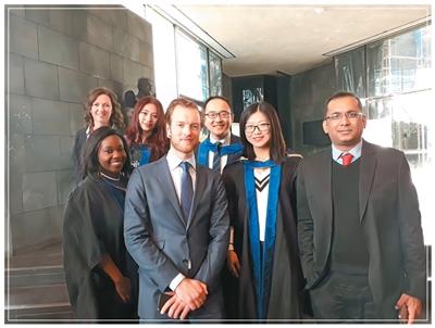 程璐(右二)与研究生同学的毕业合影。受访者供图