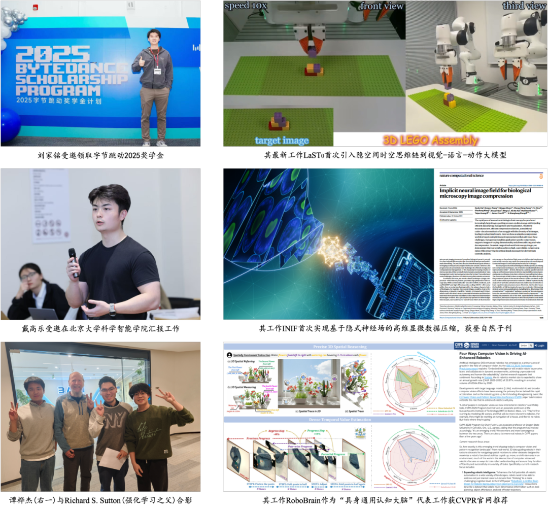 同样完成跨界蜕变的,还有硕士生谭桦杰,他带着集成电路的硬件底色,在仉尚航的引导下,构建RoboBrain具身大模型,成长为具身大脑领域的探路先锋,他作为第一作者的RoboBrain工作成为“具身通用大脑”的里程碑,被国际顶会CVPR在官网进行推荐。