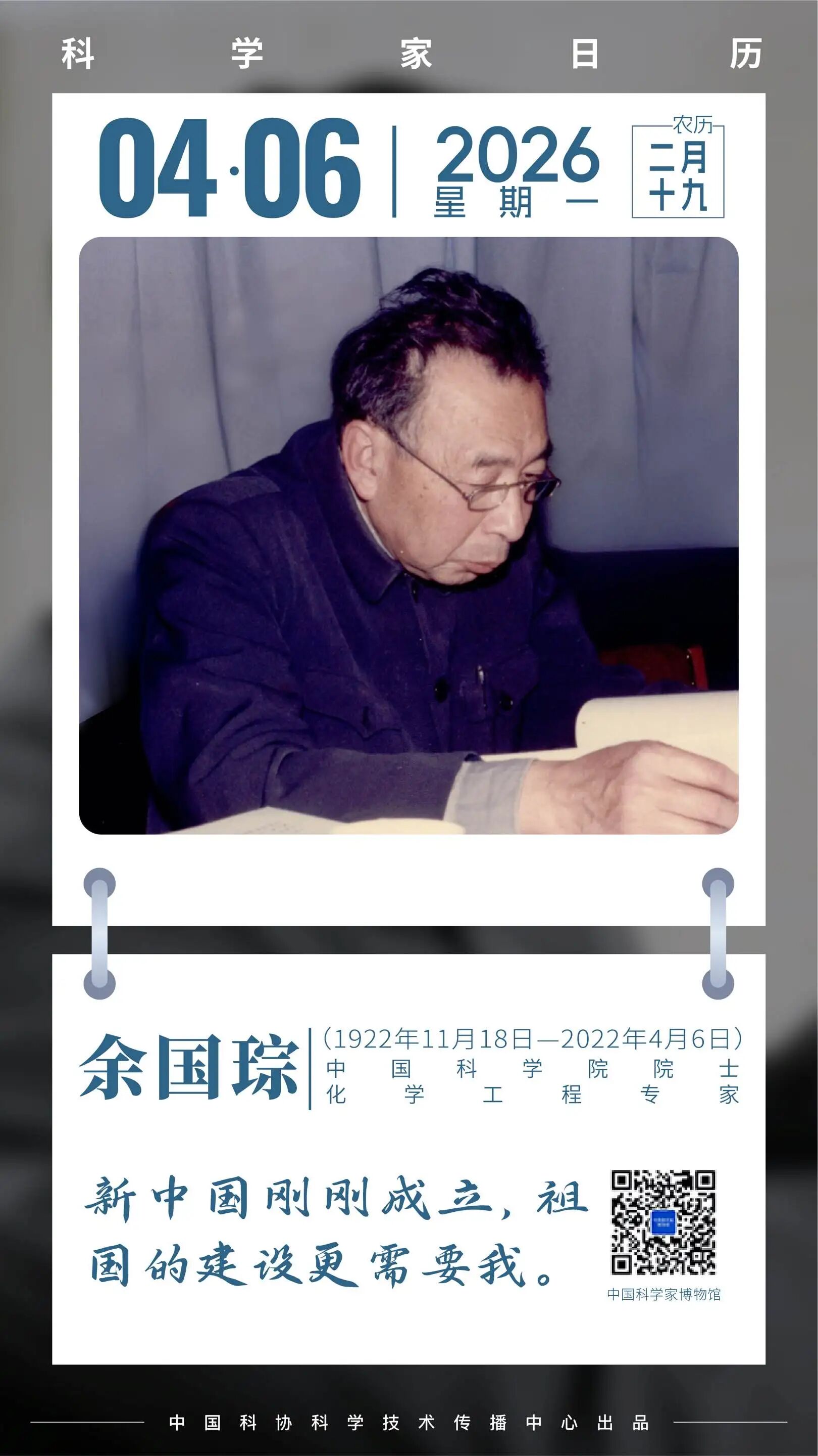 余国琮是我国精馏分离学科创始人之一,长期从事化工分离科学与工程研究,在国际上首次提出大型精馏塔非平衡-非全混模拟理论,促进了我国石化工业跨越式发展。他提出的浓缩重水“两塔法”,为新中国核技术起步作出了重要贡献。