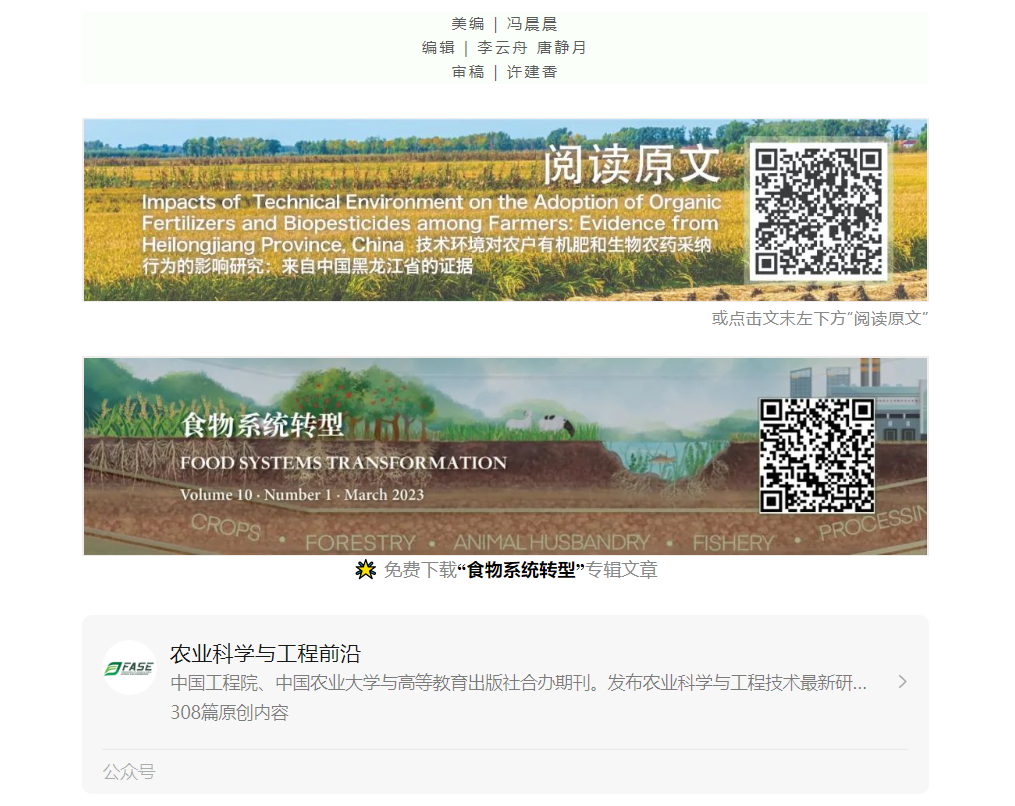 Haoyue YANG, Ting MENG, Wojciech J. FLORKOWSKI. IMPACTS OF TECHNICAL ENVIRONMENT ON THE ADOPTION OF ORGANIC FERTILIZERS AND BIOPESTICIDES AMONG FARMERS: EVIDENCE FROM HEILONGJIANG PROVINCE, CHINA. Front. Agr. Sci. Eng., 2023, 10(1): 31‒47 https://doi.org/10.15302/J-FASE-2023482