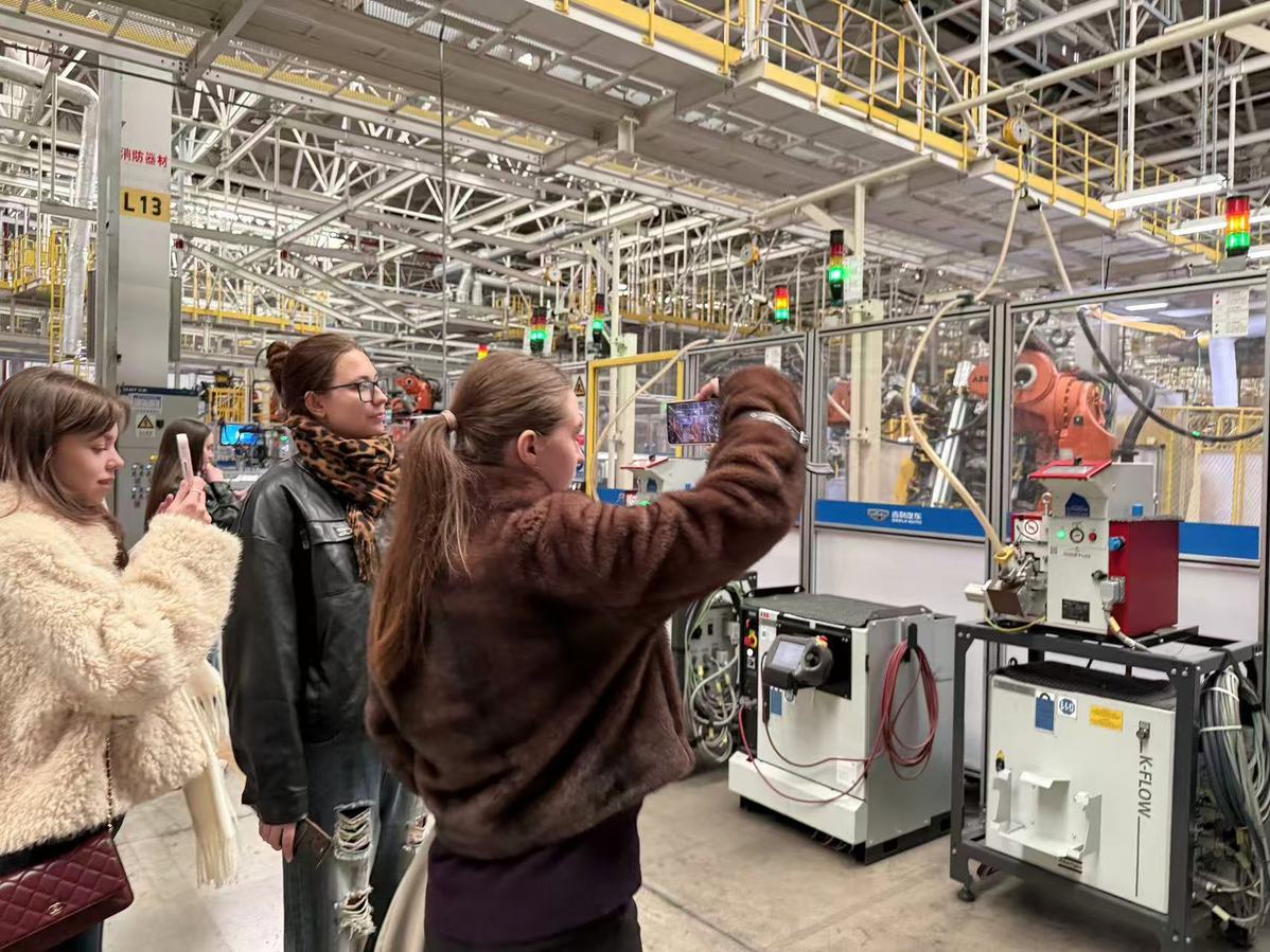 下午,研学营移师吉利汽车钱塘基地,开启“沉浸式产业洞察”之旅。通过参观现代化的展厅与智能化生产线,特别是与企业的深入交流,留学生们得以零距离感受中国先进制造业的技术实力、管理理念。这种深入的实地访学,极大地促进了留学生对中国企业出海真实场景的理解,激发了其未来成为连接中国市场与世界的桥梁的意愿。